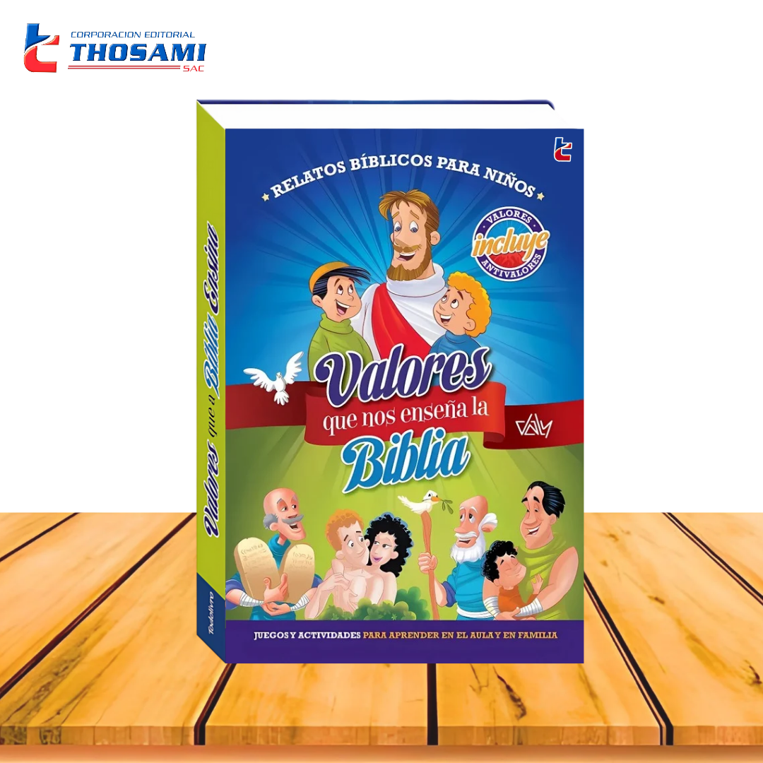 La manera más divertida para que los niños descubran los valores que nos enseñan las Sagradas Escrituras. Valores que nos enseña la biblia pone a nuestro alcance toda la sabiduría de la palabra de Dios para guiar, educar e inspirar a una nueva generación. Cada historia descubre un ejemplo a seguir (VALORES) o una conducta a evitar (ANTIVALORES), y se completa con actividades y juegos para aprender de la manera más divertida.